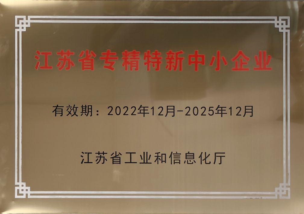 2022年12月20日我司“專精特新”認(rèn)定項目正式通過,取得“江蘇省專精特新中小企業(yè)”正式認(rèn)定并授牌。